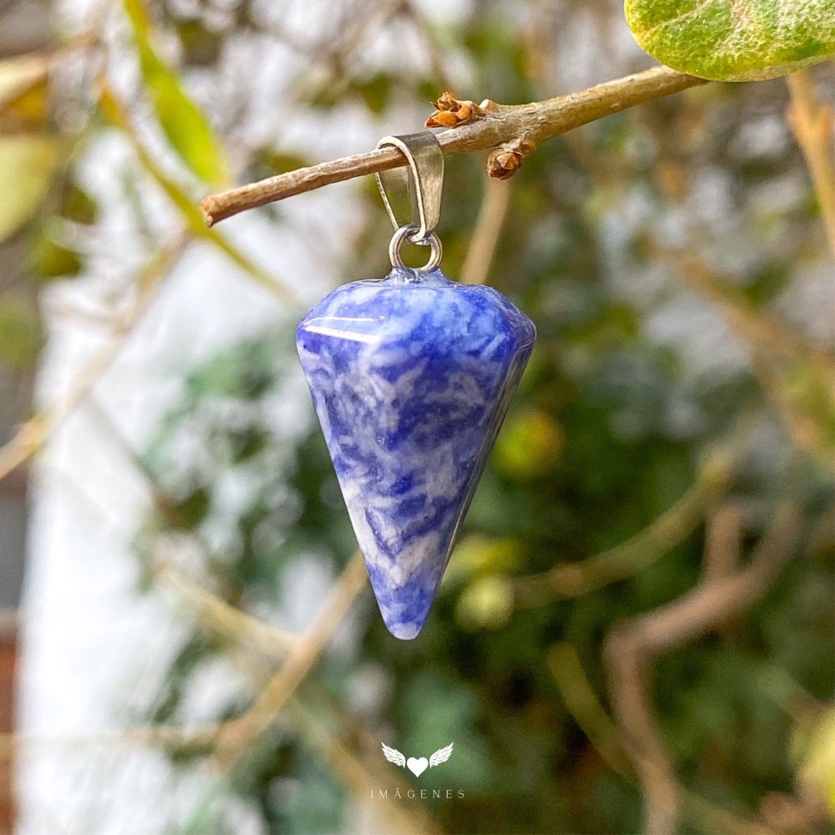 Significado: La sodalita es una piedra de tonos fríos, que se suele vincular por ello con la fantasía, la inteligencia y la creatividad, y también con la calma, la tranquilidad, la paz interior y sobre todo, la espiritualidad. De ahí que se use mucho en meditación, para favorecer la concentración y para lograr excelentes proyecciones astrales.Lo que hace el péndulo es aumentar y ampliar nuestro rango de percepción con el acceso a nuestra mente subconsciente, dandonos así mas datos en los que basar una decisión.